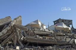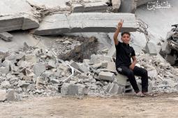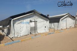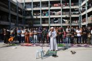 مصلّون يؤدُّون صلاة الجمعة في أحد مراكز الإيواء بغزة، بعد انقطاع لأشهر طويلة بسبب حرب الإبادة الجماعيَّة