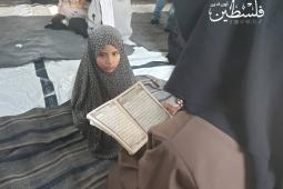 الطفلة آلاء مسمح (5 أعوام) تشارك كأصغر طالبة في السرد القرآني بمواصي خان يونس