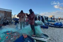 صيادون فلسطينيون يحظون بكميات شحيحة من الأسماك بعد صراع عنيف مع أمواج البحر
