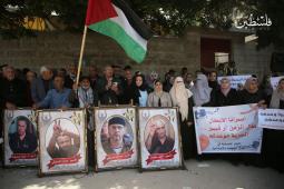وقفة تضامنية مع الأسرى الفلسطينيين داخل سجون الاحتلال أمام مقر الصليب الأحمر بغزة