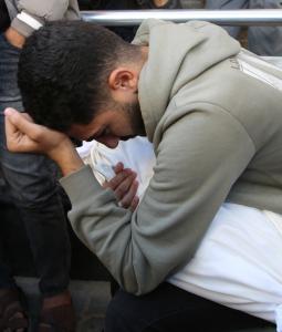 وداع حزين لشهداء عائلة "النِّدر" من داخل مجمّع الشفاء الطبي في مدينة غزة