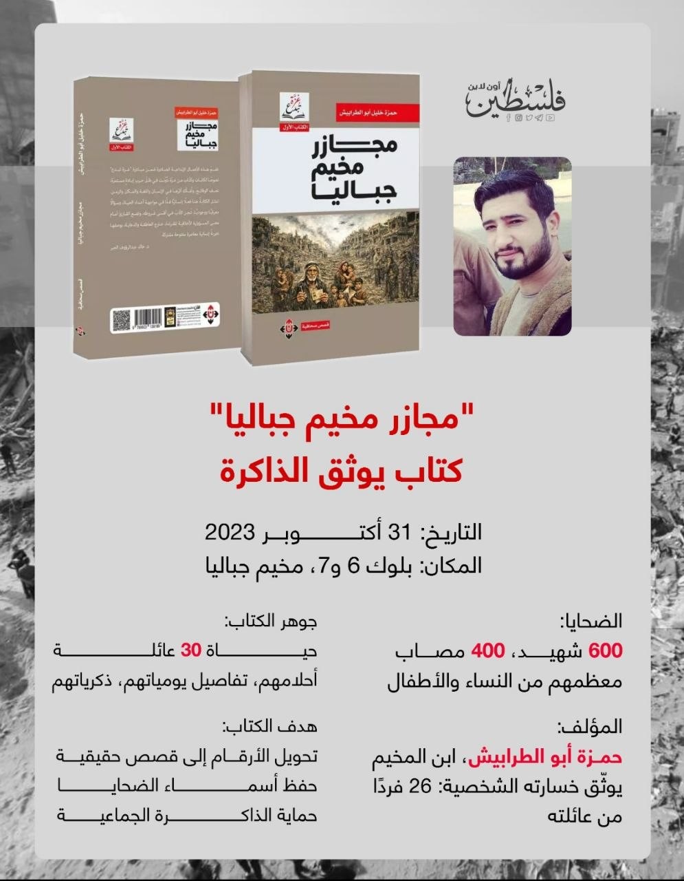 توثيق الدم والذاكرة… كتاب يرصد مجازر مخيم جباليا بوصفها سردية إنسانية