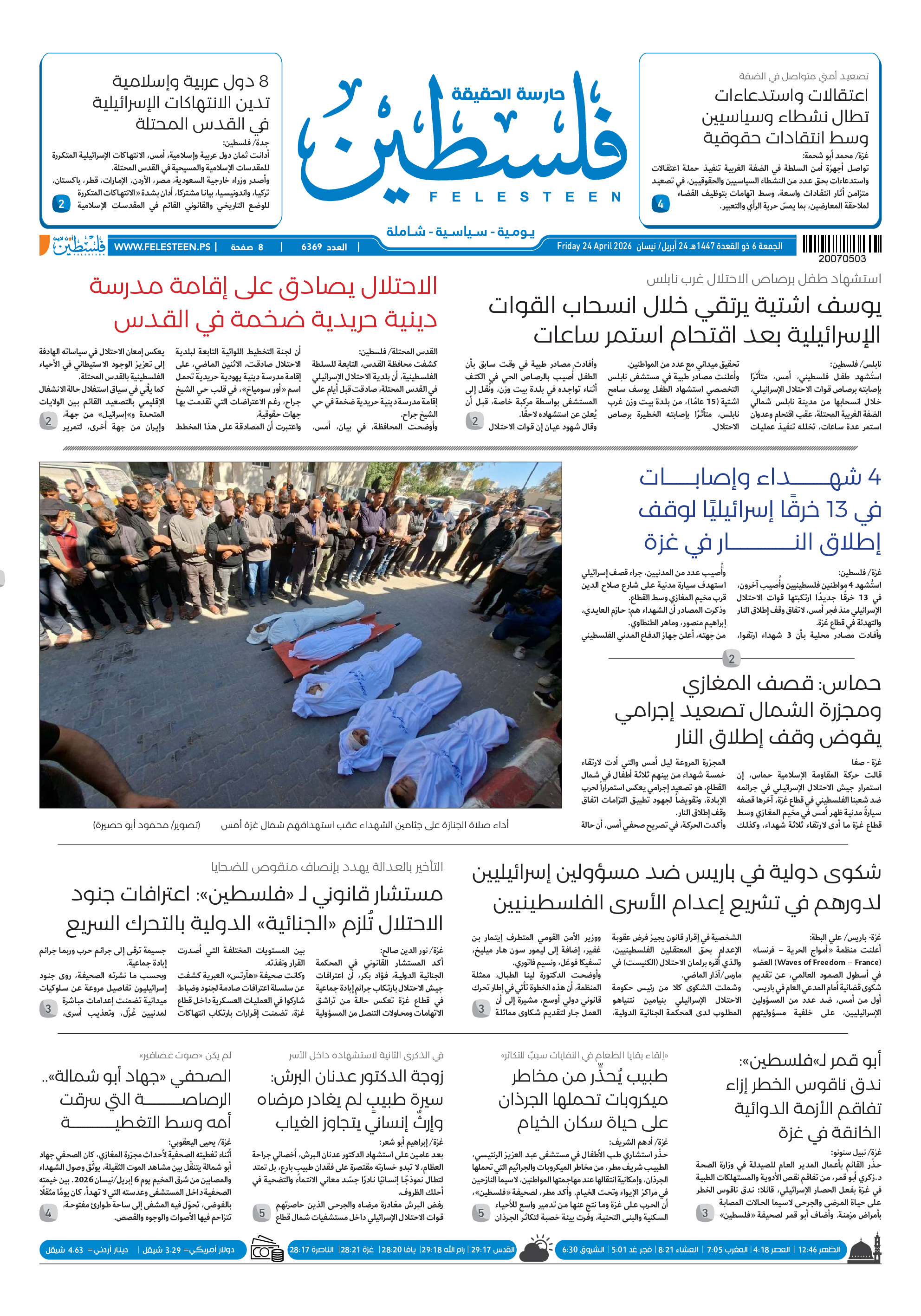 الصحة بغزة: 6 شهداء و 18 إصابة خلال الـ 24 ساعة الماضية