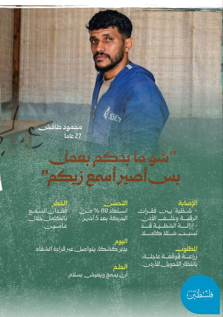 شظية قرب الحبل الشوكي تهدد مستقبله... محمود طافش يتمسك بحلم السمع