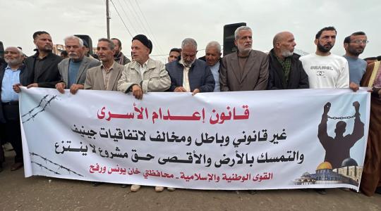 وقفة في خان يونس تندد بقانون إعدام الأسرى وتؤكد التمسك بحقوقهم