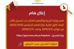 دليل شامل للتسجيل في الصف الأول لطلبة غزة (2025/2026)