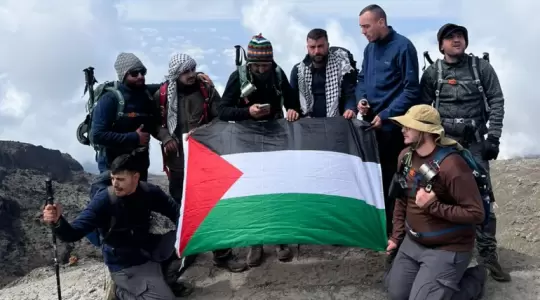 رحالة مقدسيون يرفعون العلم الفلسطيني على قمة أوهورو في تنزانيا
