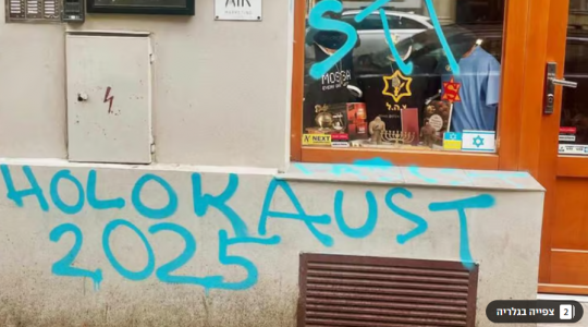 محتجون يخطون شعارات مناهضة للإبادة على واجهة متجر يهودي في براغ