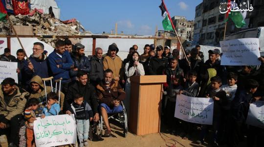 وقفة شعبية للمطالبة بادخال منازل متنقّلة والتعجيل ببدء عملية الإعمار