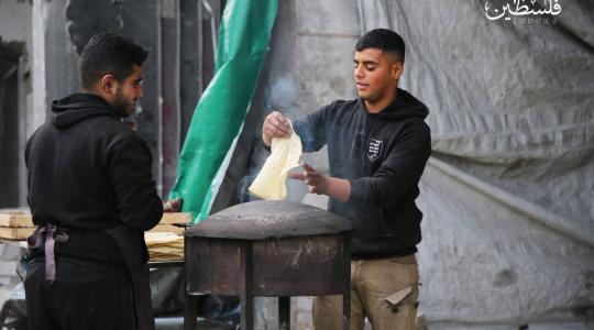 شاب يقوم بتجهيز خبز "التنُّور" بين ركام مبنى دمره الاحتلال خلال العدوان على غزة
