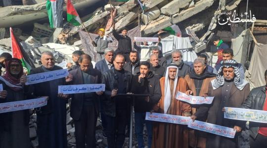 وقفة تضامنية أمام عائلة الشنا في مخيم المغازي التي فقدت اثنين من أبناءها نتيجة انهيار منزلها المدمر