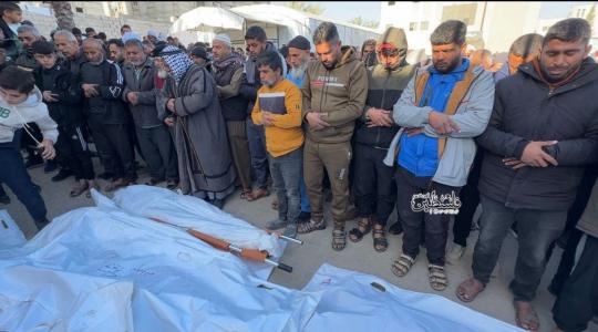 وداع 7 شهداء من عائلة أبو حدايد ارتقوا في استهداف الاحتلال خيمتهم جنوب القطاع