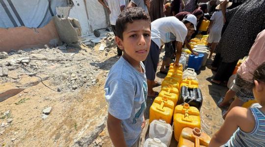 نازحون يكافحون للحصول على مياه الشرب في مواصي خانيونس وسط التجويع والإبادة