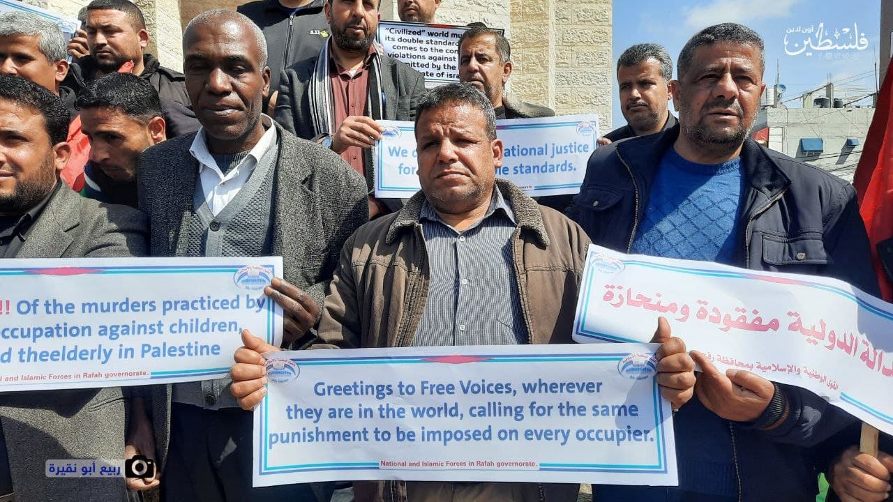 وقفة برفح رفضا واستنكارا لازدواجية المعايير لدى الغرب