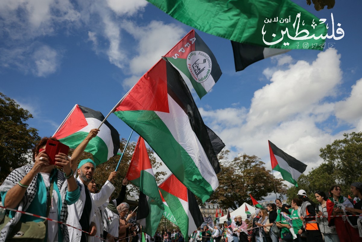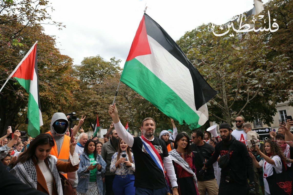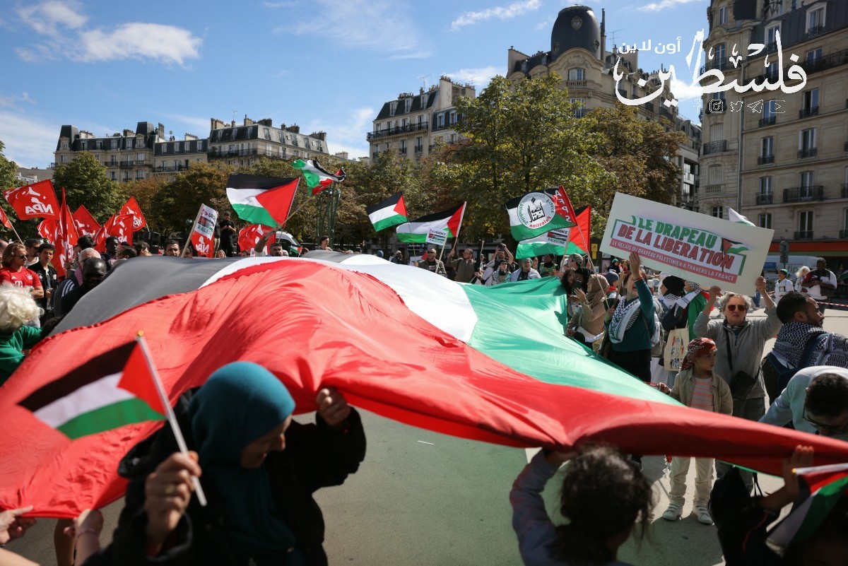 متضامنون في باريس يرفعون شعارات مُطالبة بوقف الحرب على غزّة
