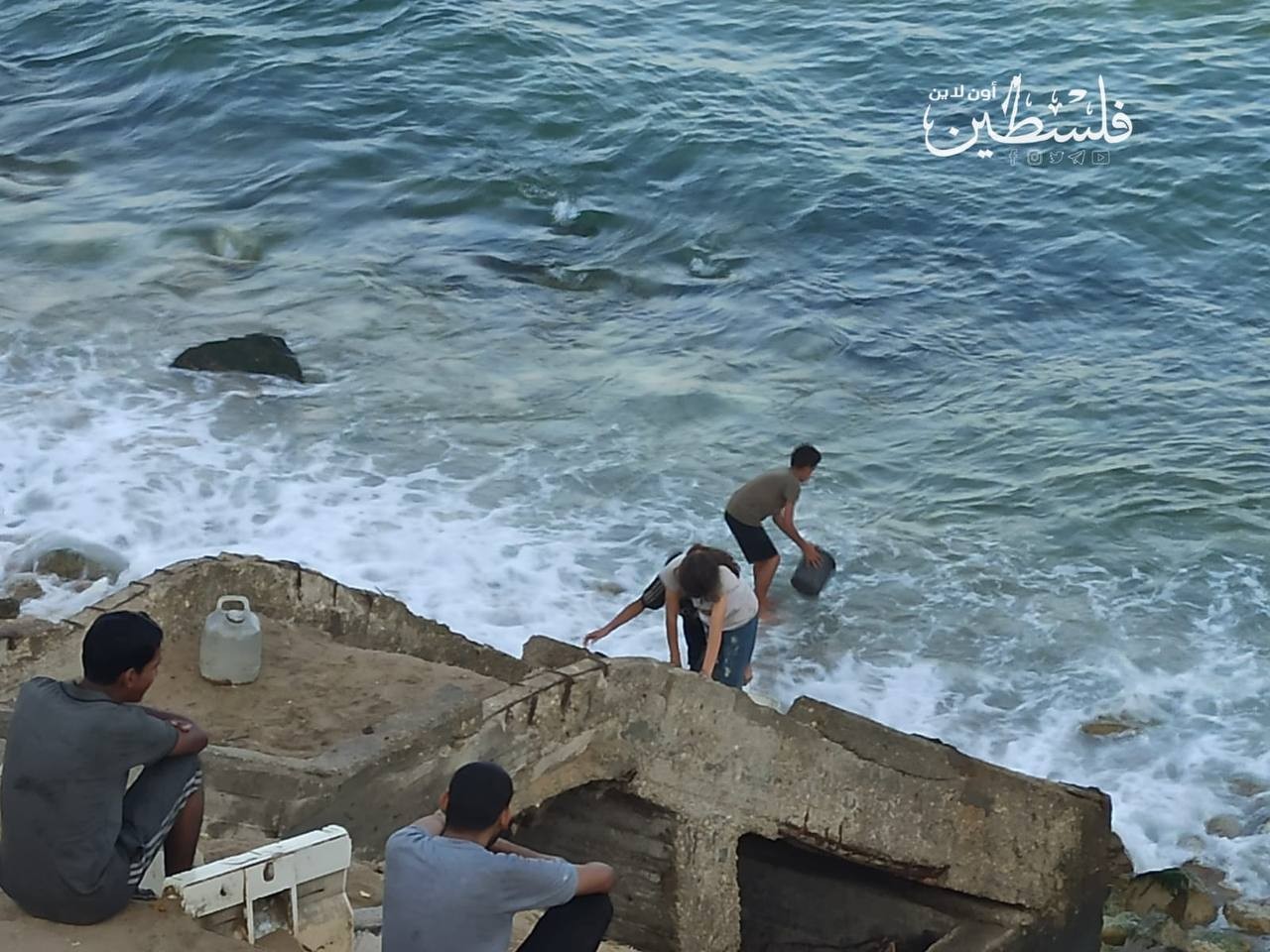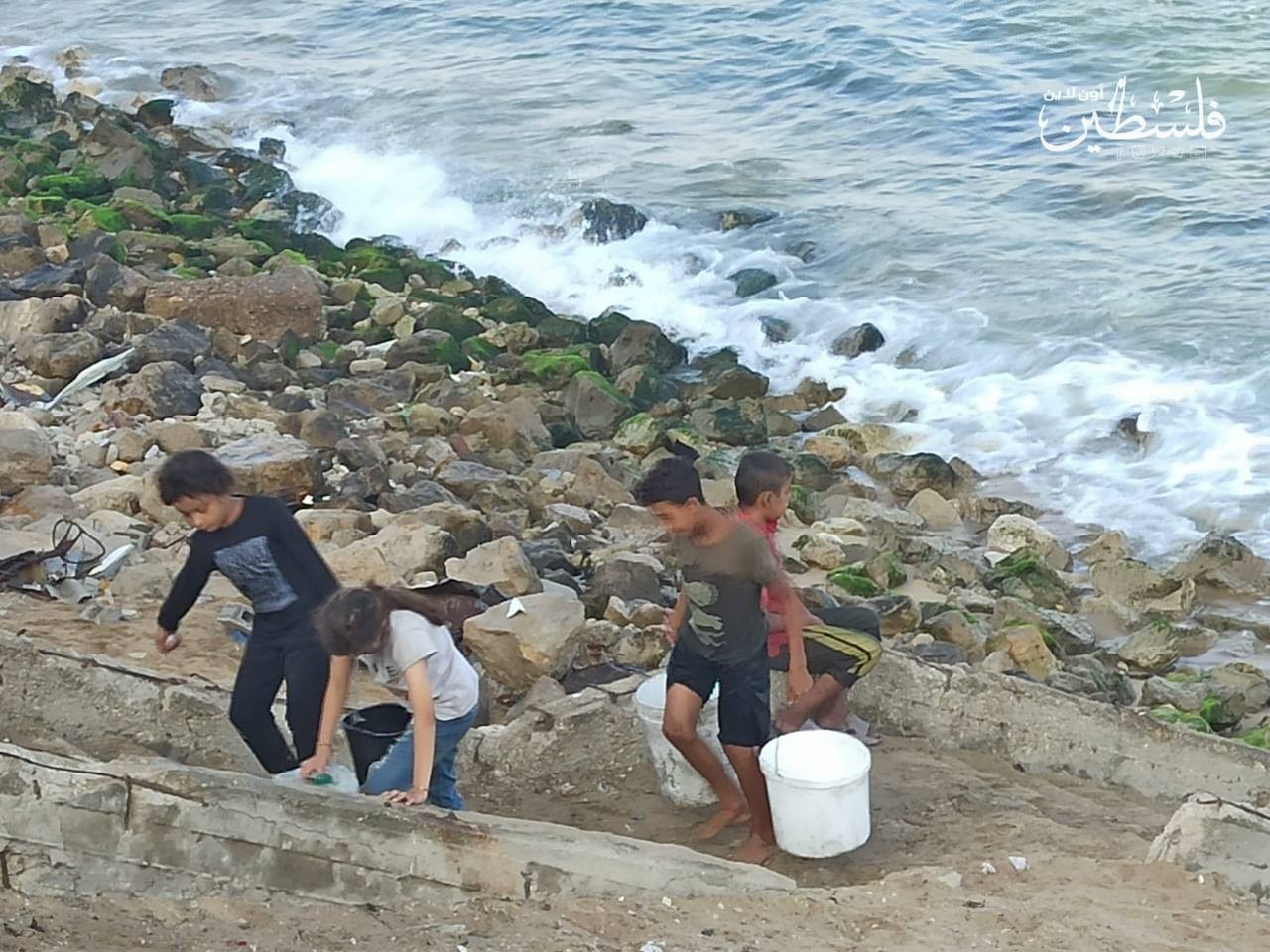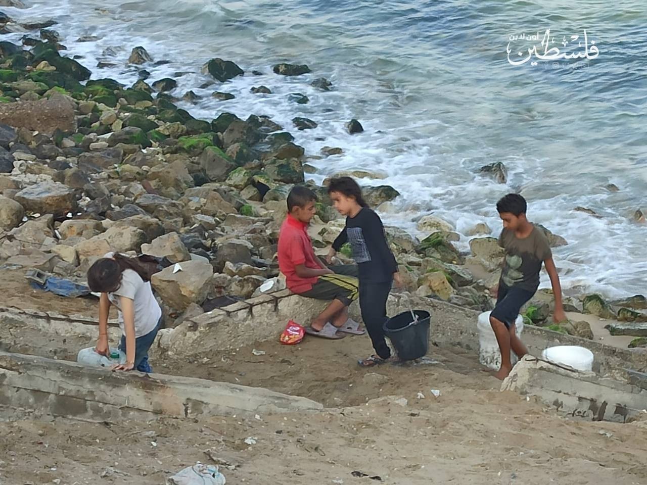 مدينة غزة.. أطفال يملؤون جالونات من مياه البحر في ظل النقص الحاد بالمياه