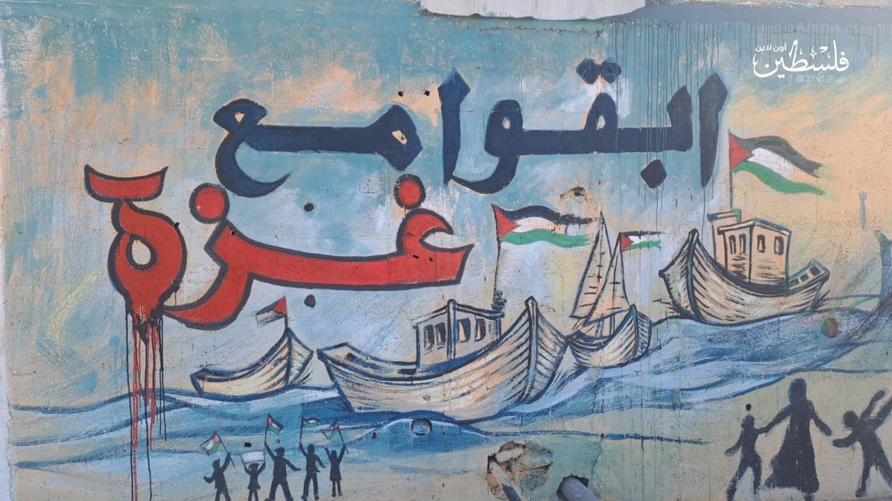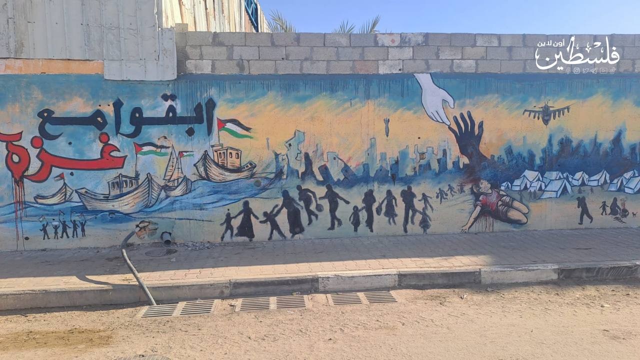 لوحة رسمها فنانون ناجون من الإبادة الجماعية على جدار أعيد ترميمه بعد تعرضه للدمار "الإسرائيلي"