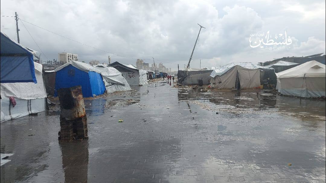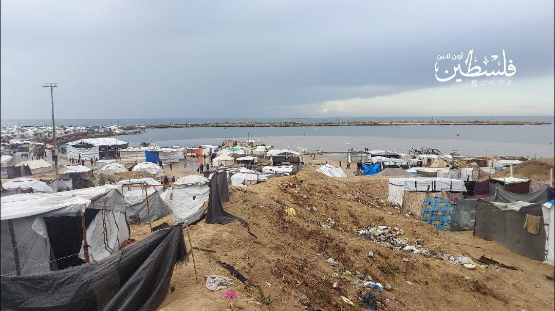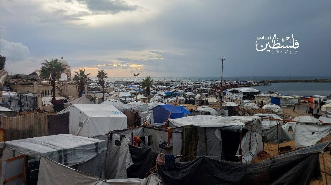 حالة الخيام في ميناء غزة وتمزقها بسبب غزارة الشتاء ودعوات المواطنين لتوفير بدائل أفضل