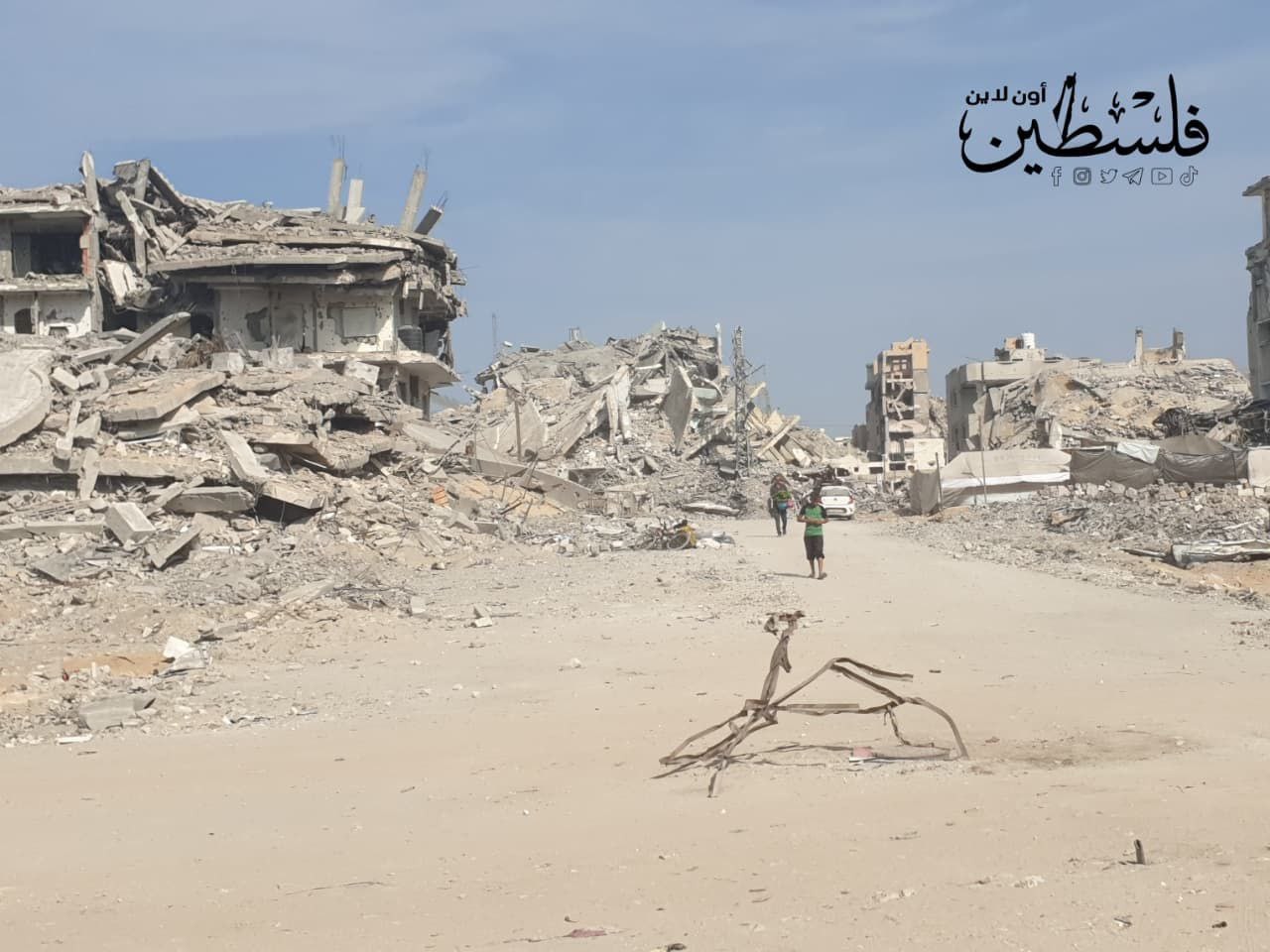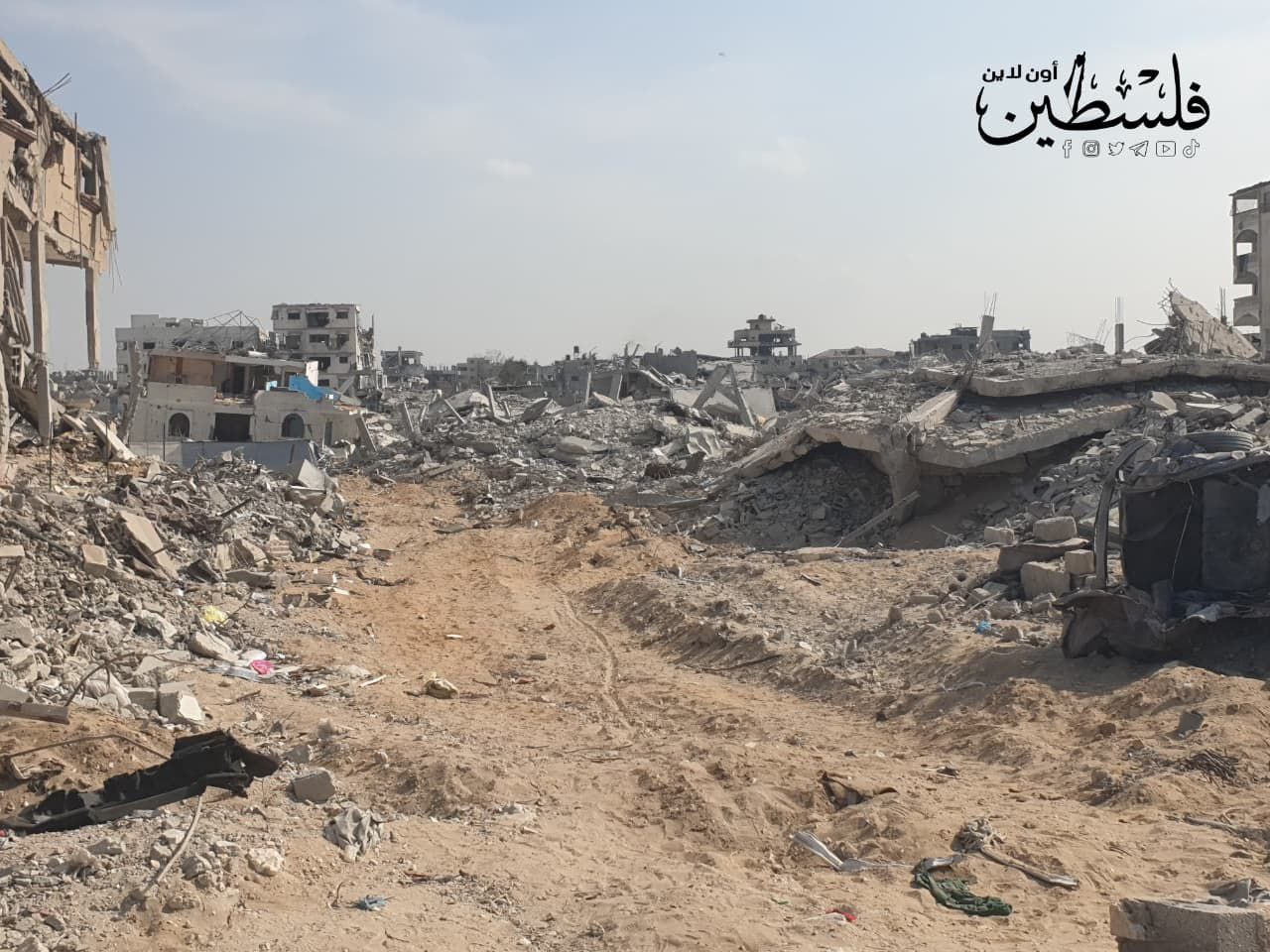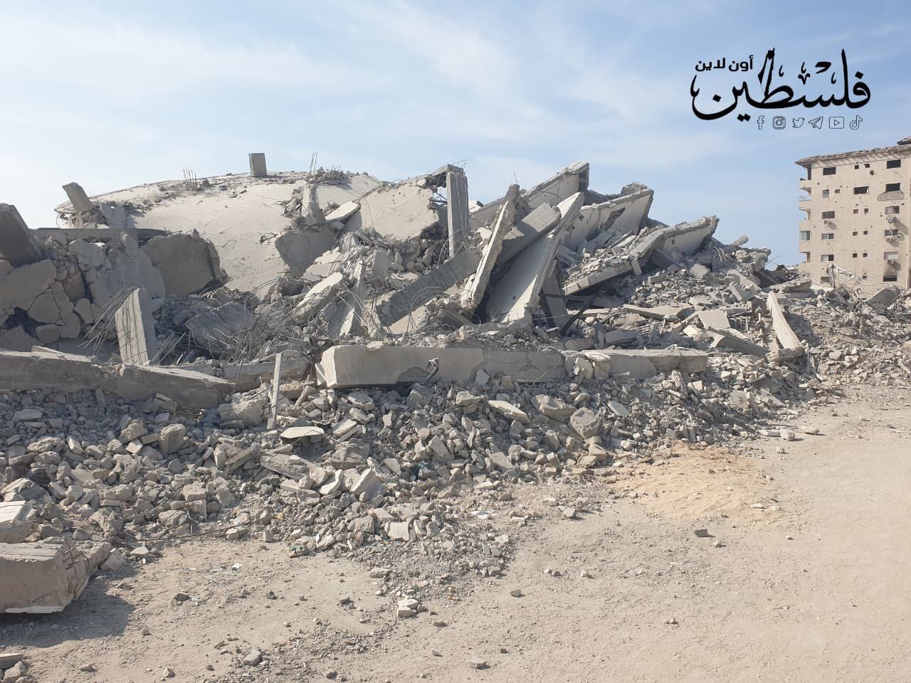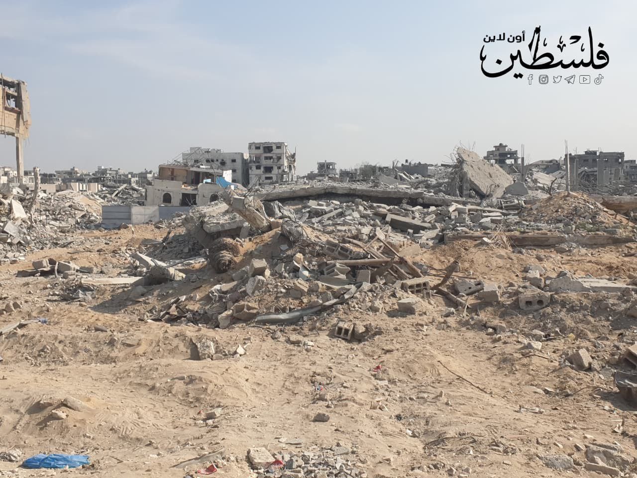 دمار كبير خلفه الاحتلال في منطقة مفترق المالية في حي تل الهوى غرب مدينة غزة