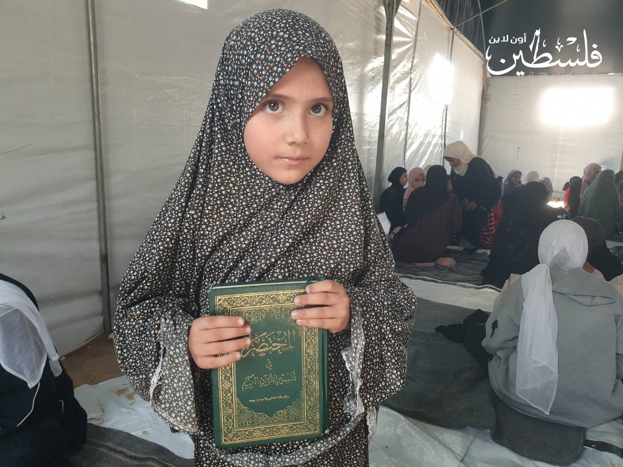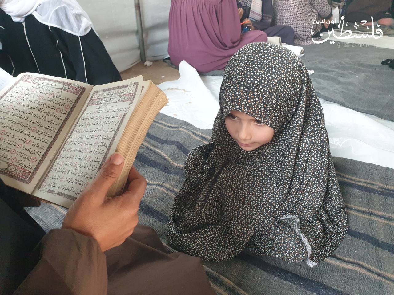 الطفلة آلاء مسمح (5 أعوام) تشارك كأصغر طالبة في السرد القرآني بمواصي خان يونس