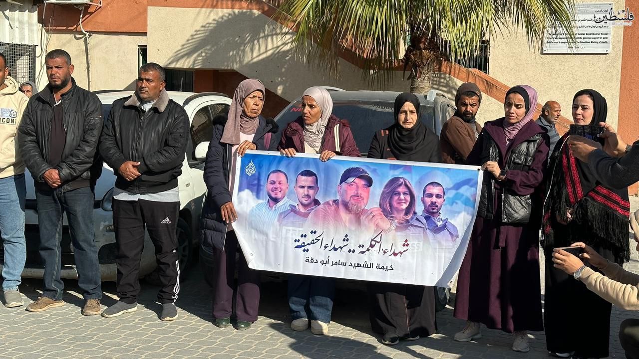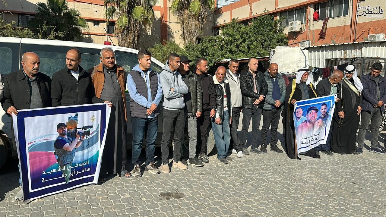 قناة الجزيرة وعائلة أبو دقة تنظمان وقفة في ذكرى استشهاد الصحفي سامر أبو دقة مصور قناة الجزيرة