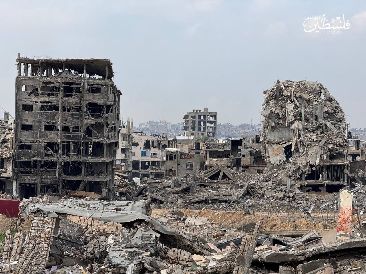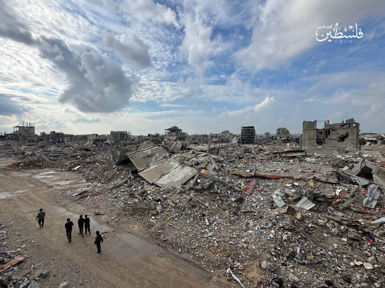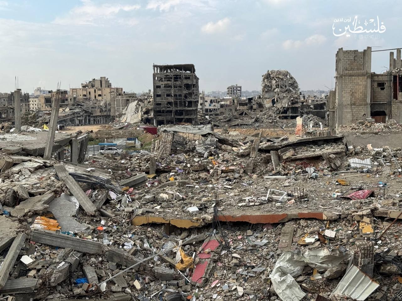 الدمار الواسع الذي طال وسط مدينة خانيونس قرب الخط الأصفر