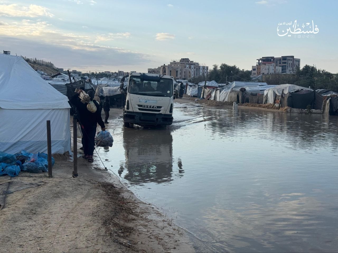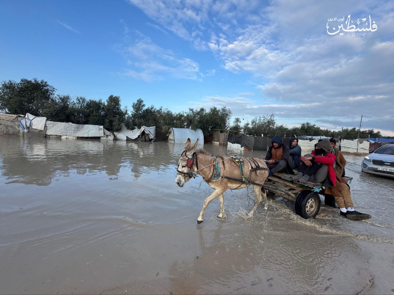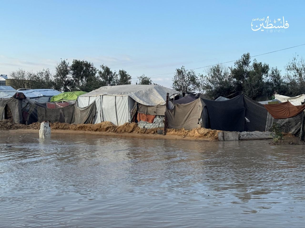 ظروف قاسية يعيشها النازحون في خانيونس جراء تساقط الأمطار والرياح الشديدة