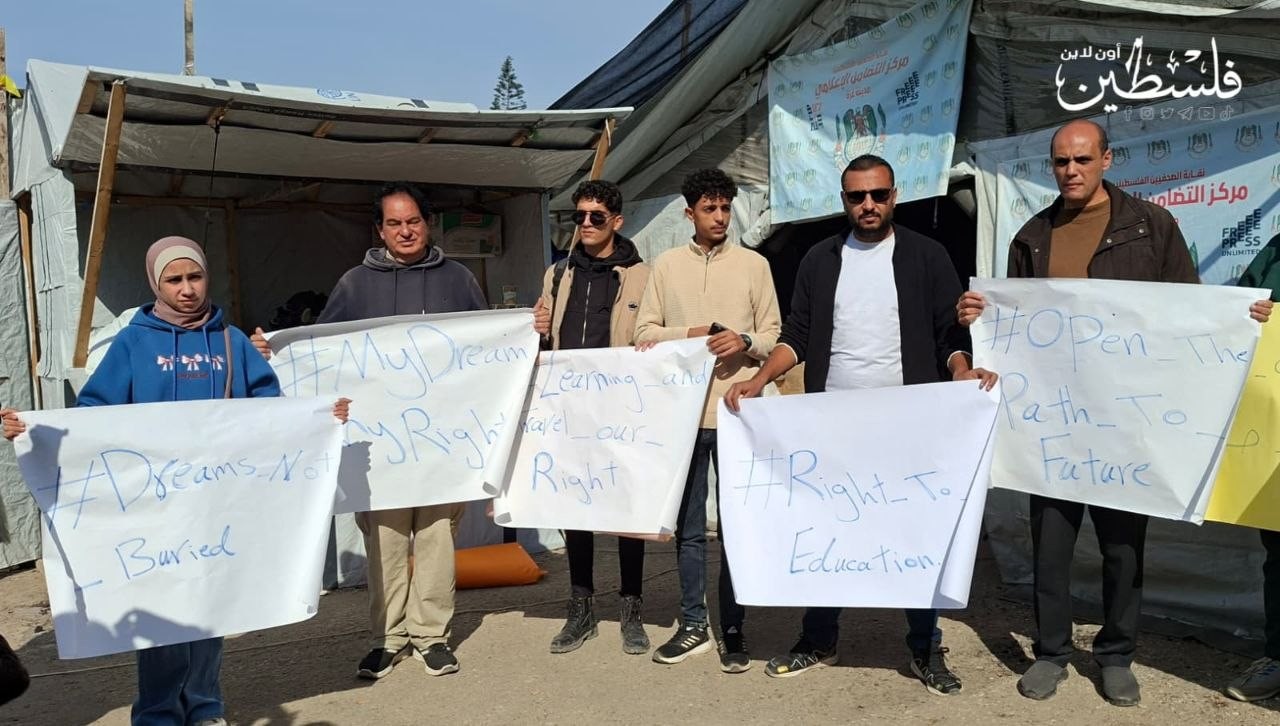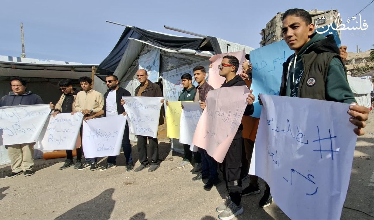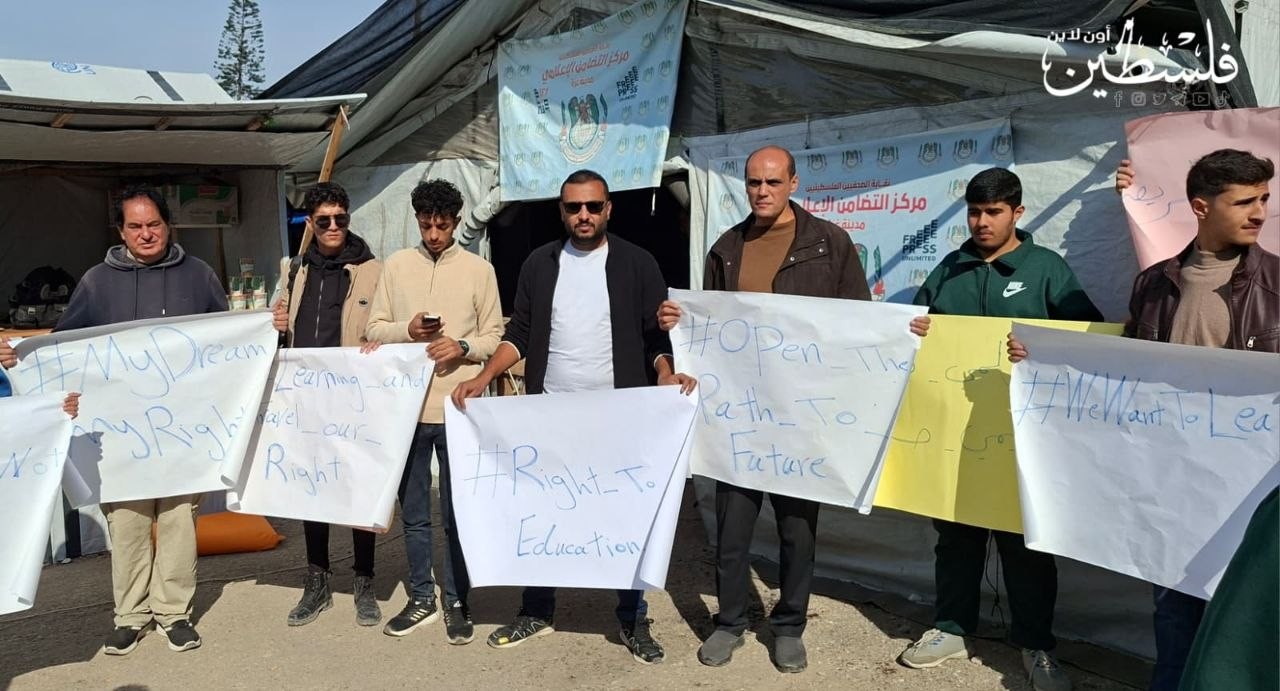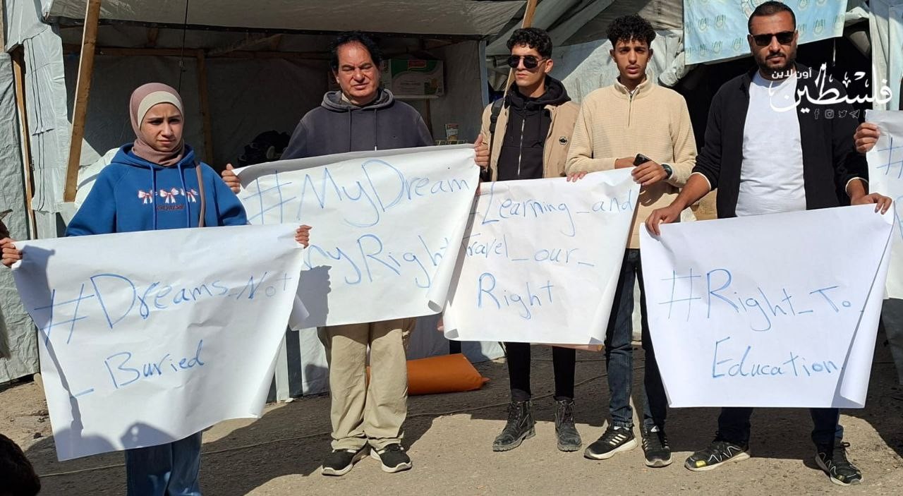 وقفة لطلاب غزة العالقين للمطالبة بفتح معابر القطاع وتسهيل سفرهم لإكمال دراستهم