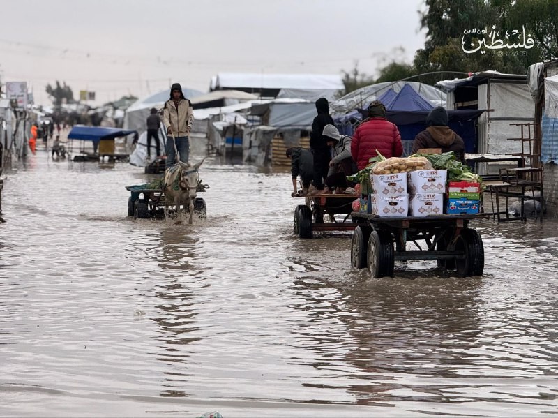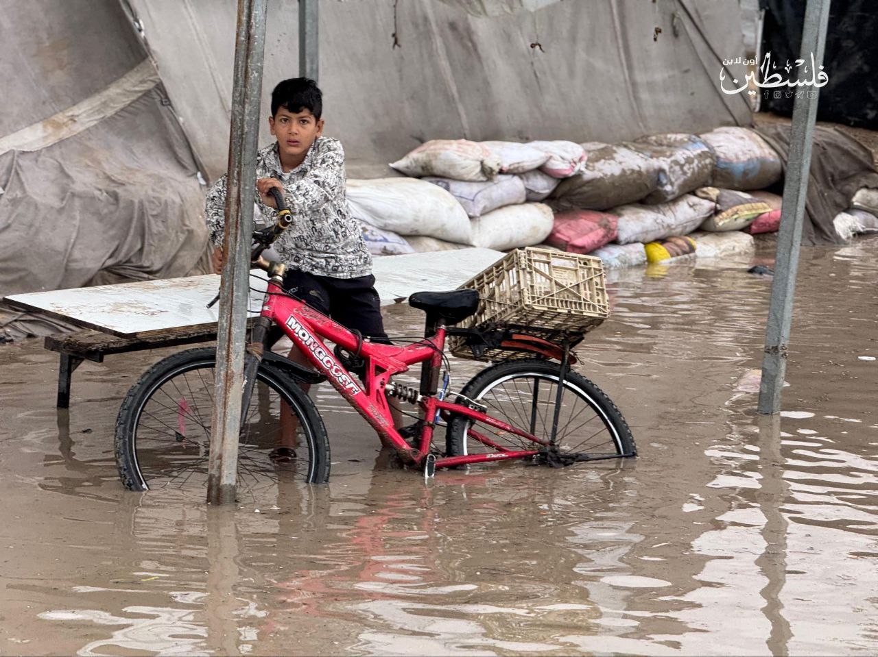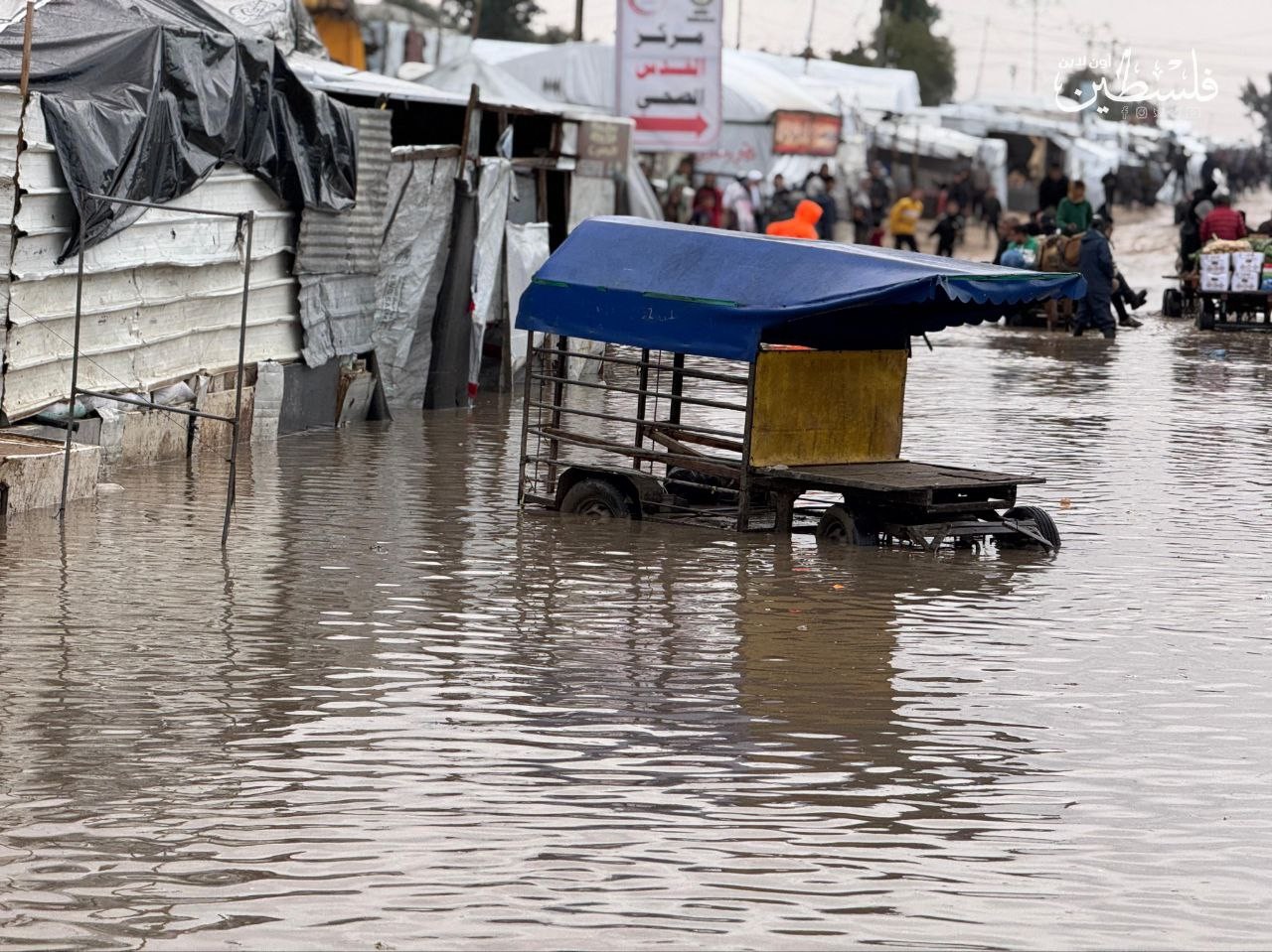 شوارع غزة وخيام النازحين تغرق بمياه الأمطار في ظل انهيار البنية التحتية جراء الحرب