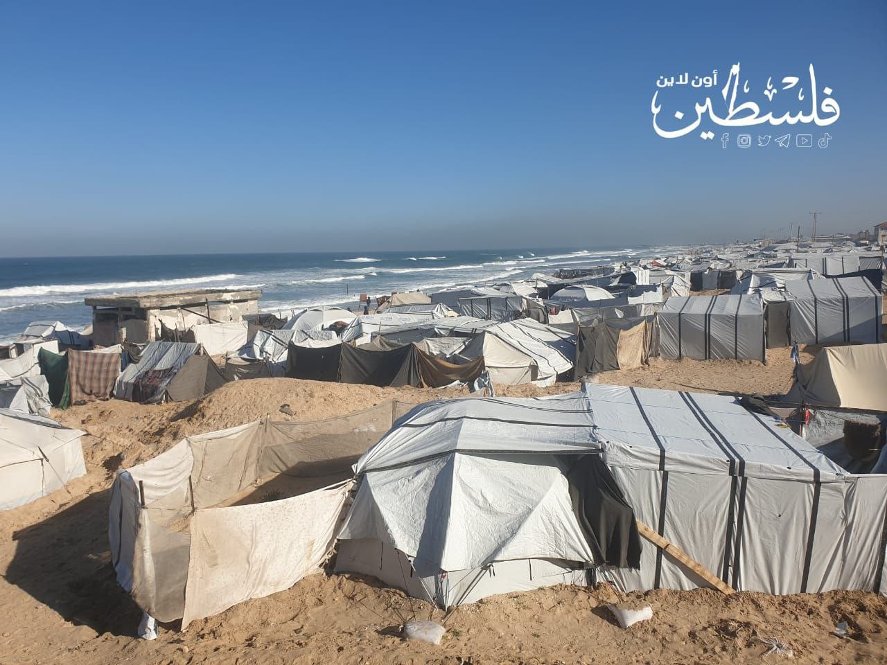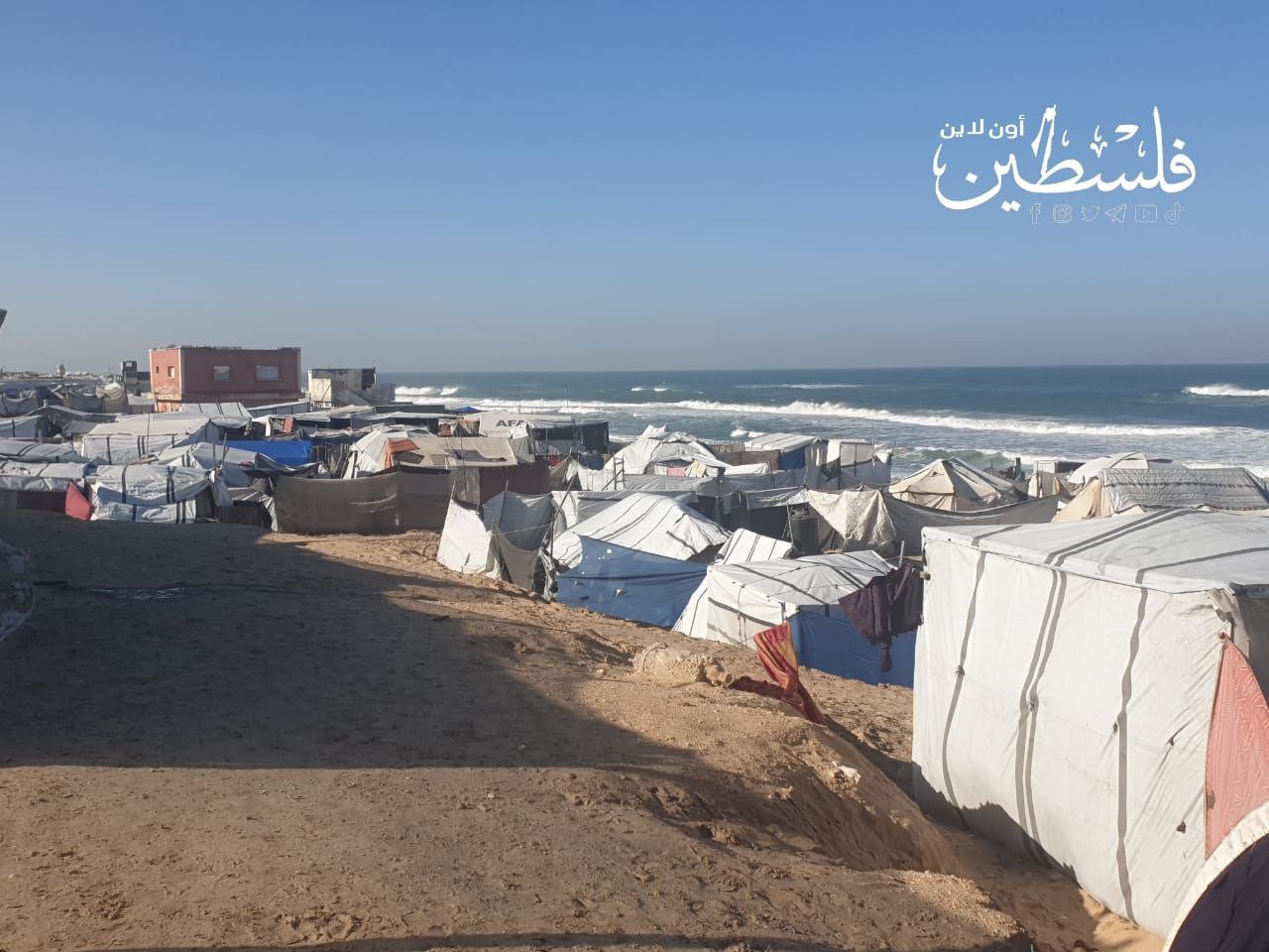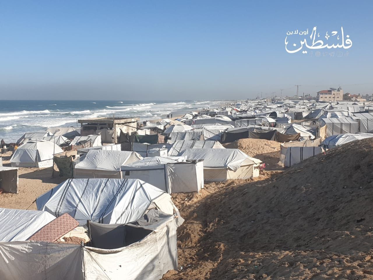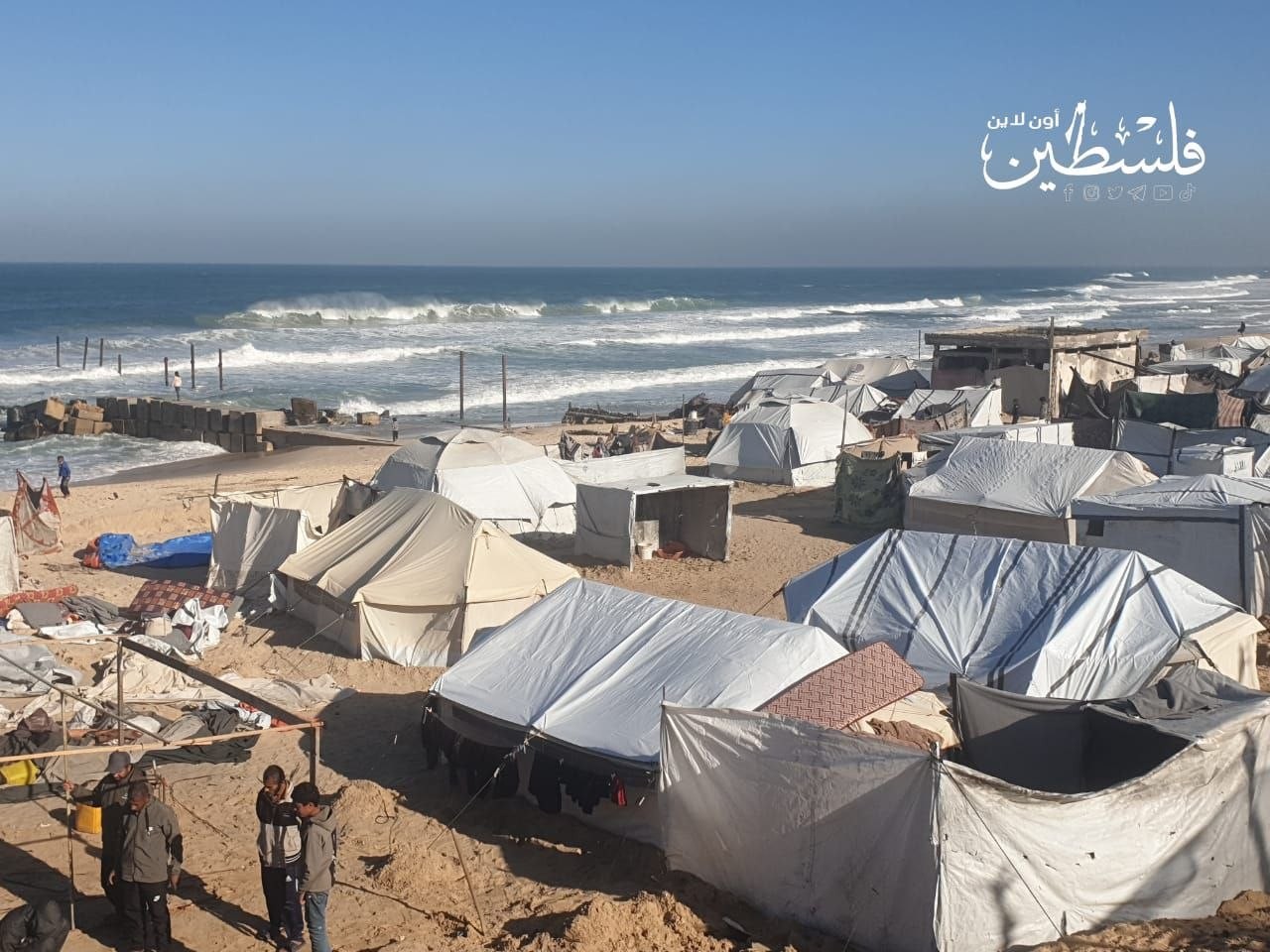خيام مهترئة تتكدّس على شاطئ غزة في ظروف إنسانية قاسية جراء الحرب