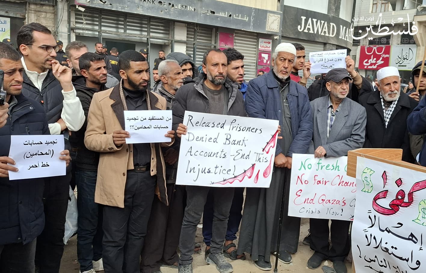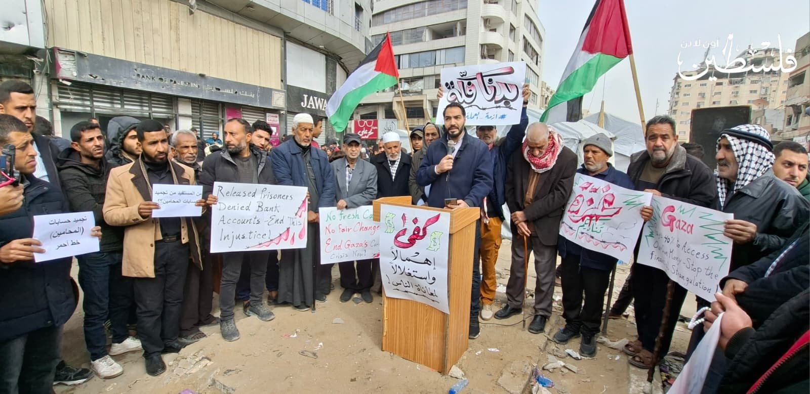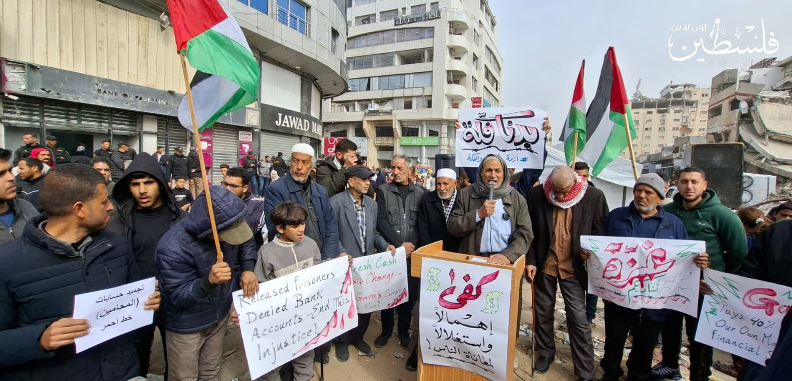وقفة احتجاجية بغزة تطالب بحل جذري للأزمة المالية بعد تقاعس البنوك وسلطة النقد عن أداء دورها