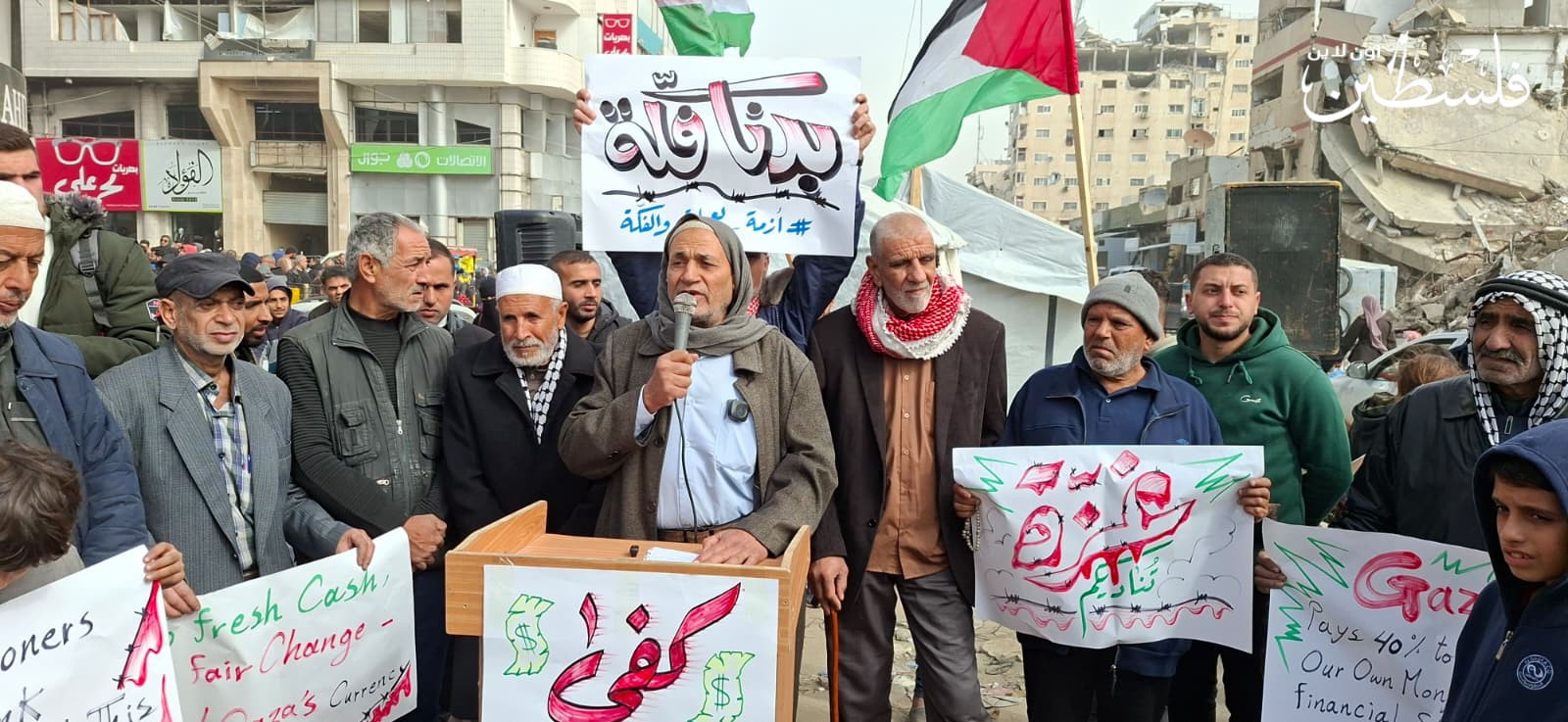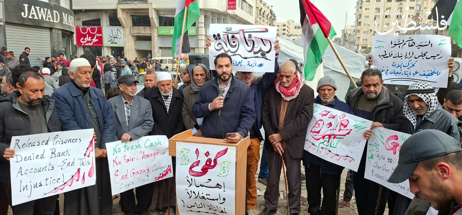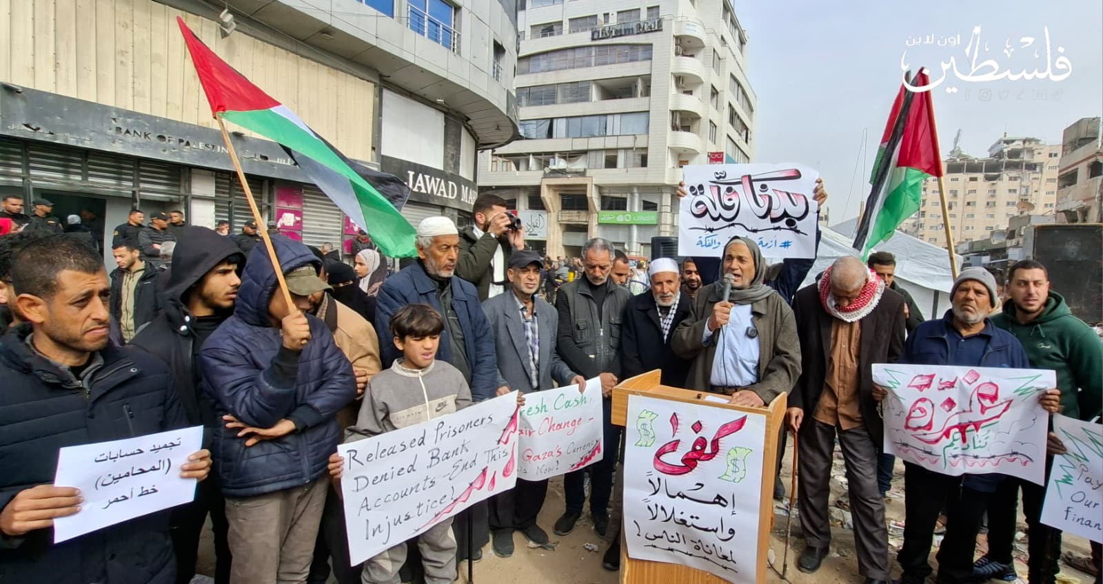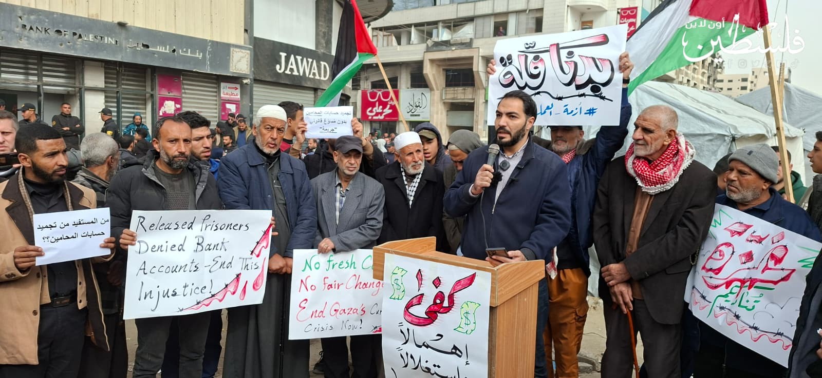 وقفة احتجاجية بغزة تطالب بحل جذري للأزمة المالية بعد تقاعس البنوك وسلطة النقد عن أداء دورها
