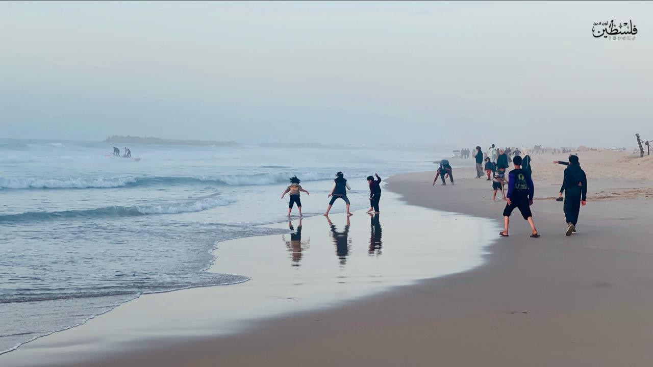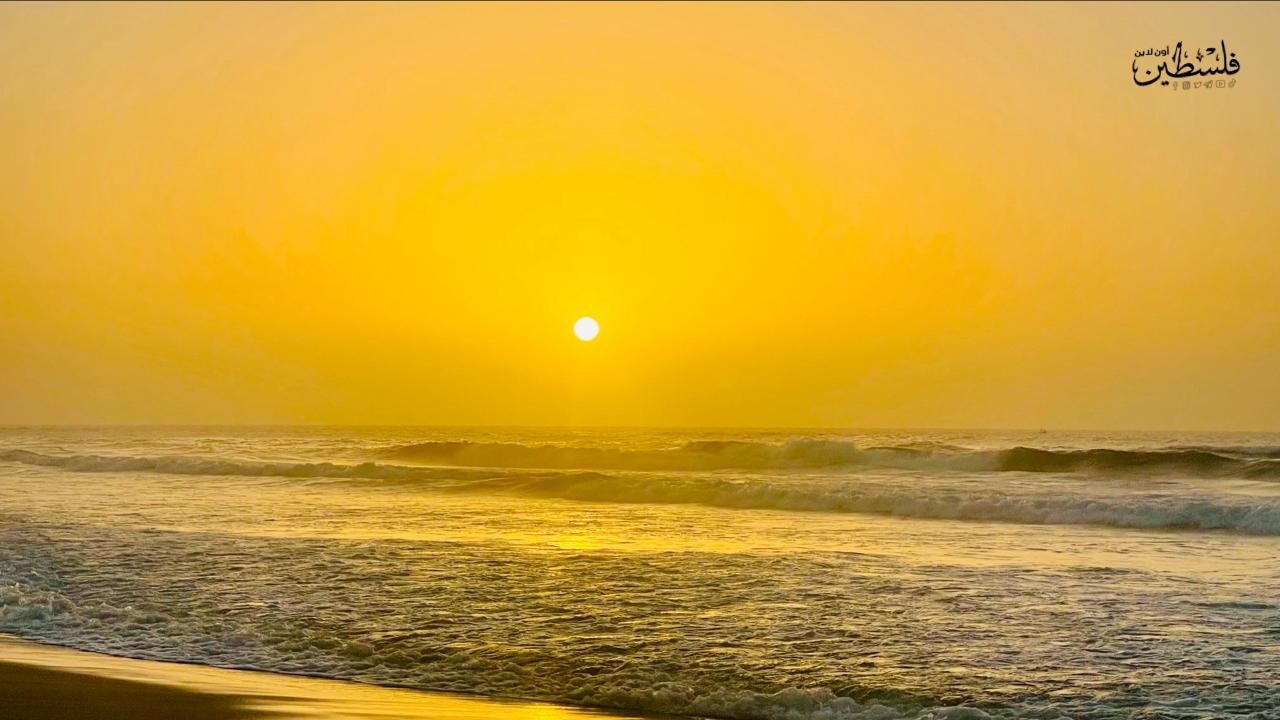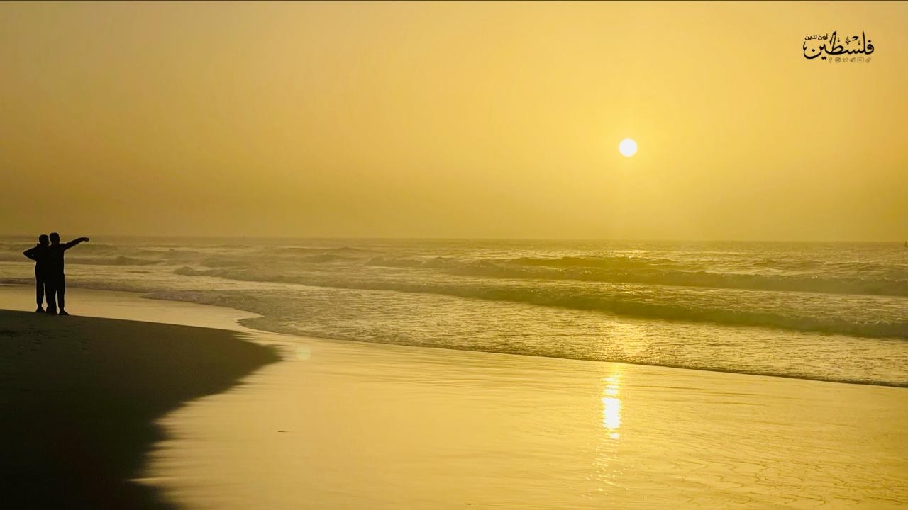 شاطئ بحر غزة اليوم مع غروب الشمس