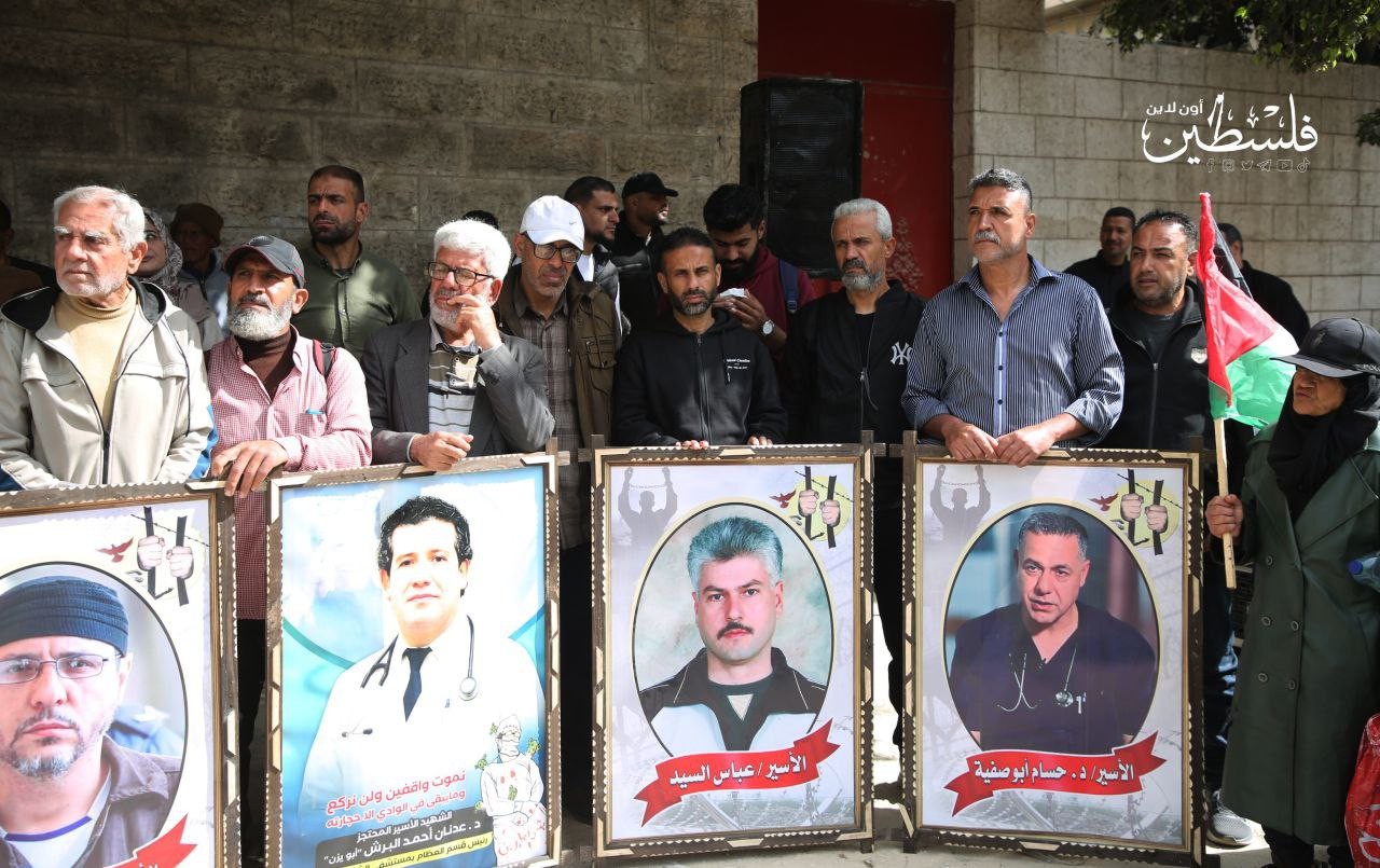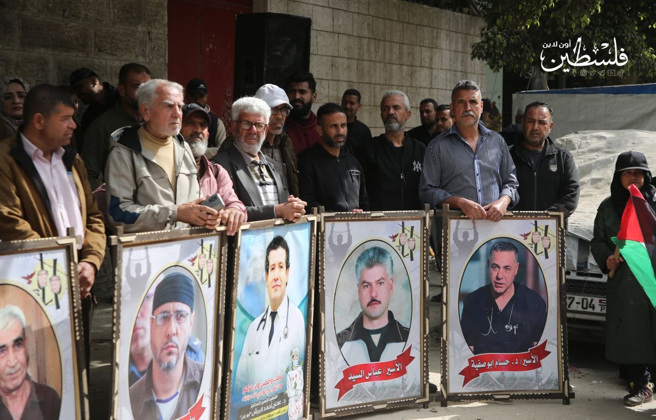 وقفة احتجاجية تضامنًا مع الأسرى الفلسطينيين، أمام مقر اللجنة الدولية للصليب الأحمر بغزة