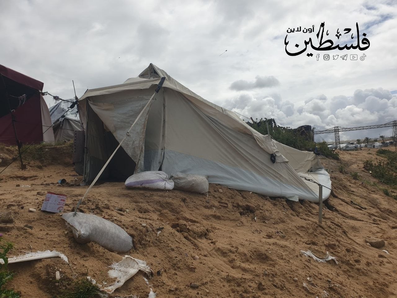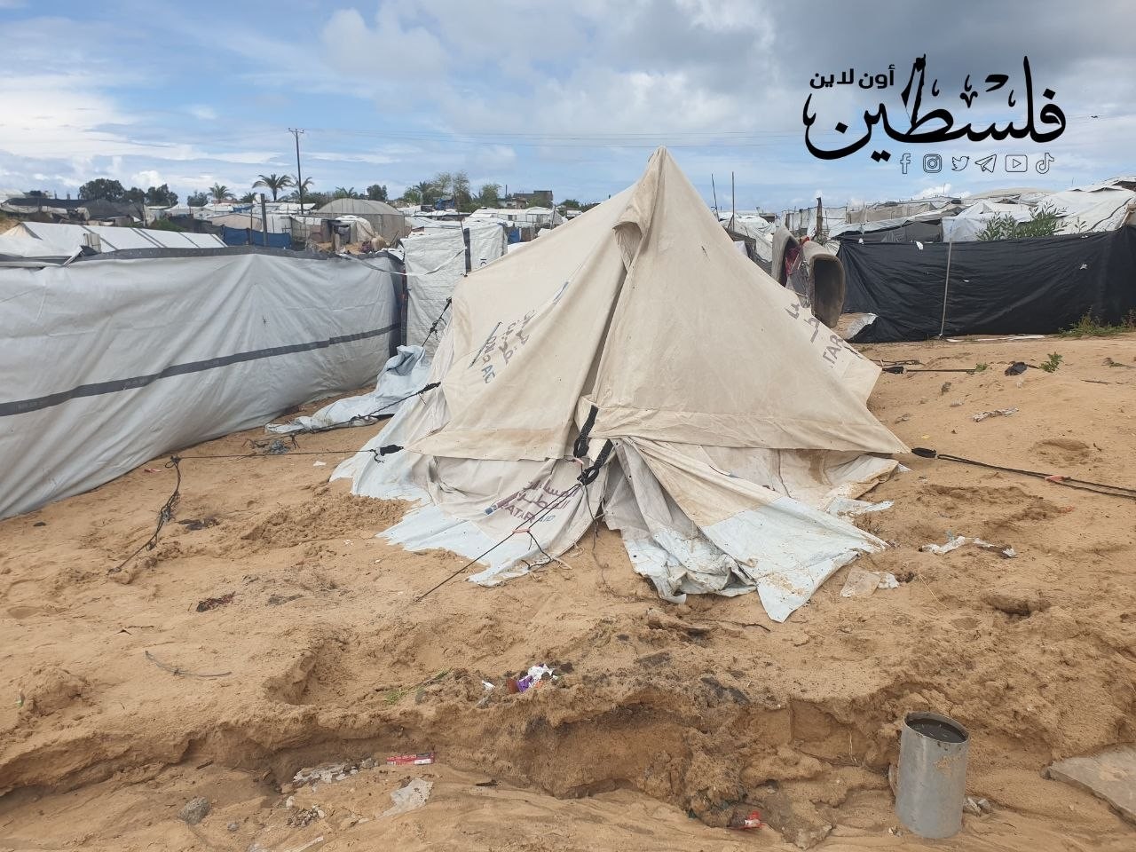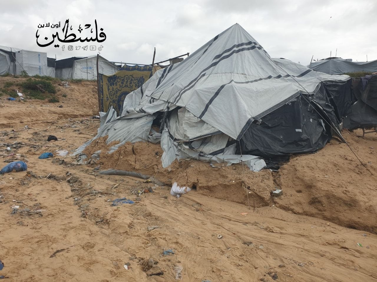 ضرر وغرق عدد كبير من خيام النازحين في غزة جراء منخفض جوي عميق