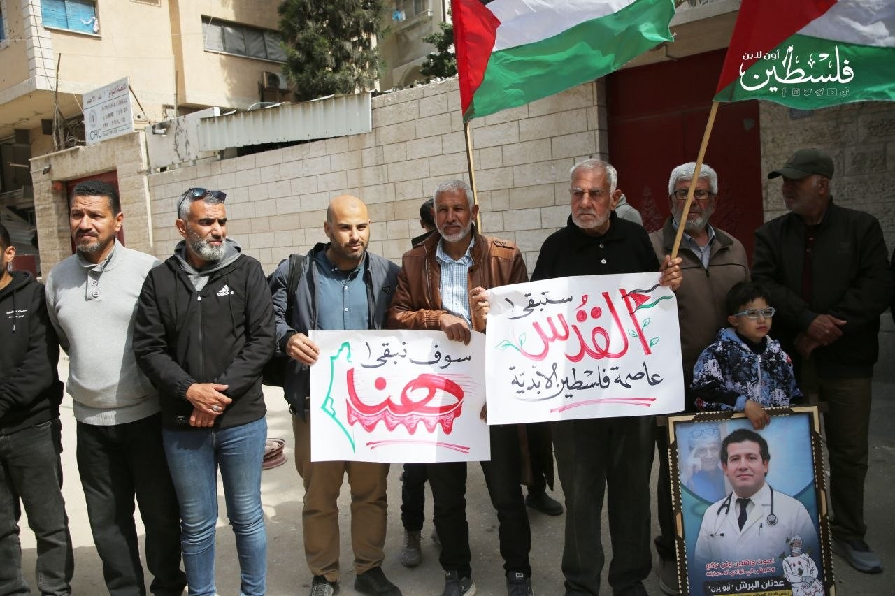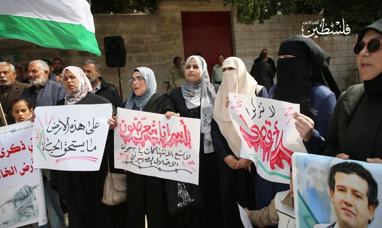 وقفة أمام مقر الصليب الأحمر بغزة، تضامنًا مع الأسرى الفلسطينيين في سجون الاحتلال