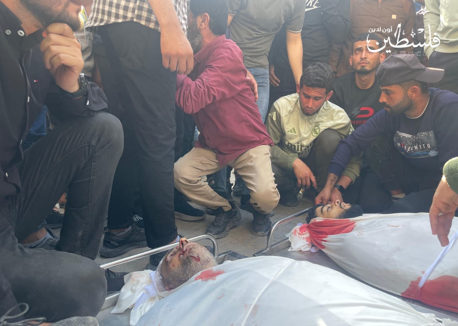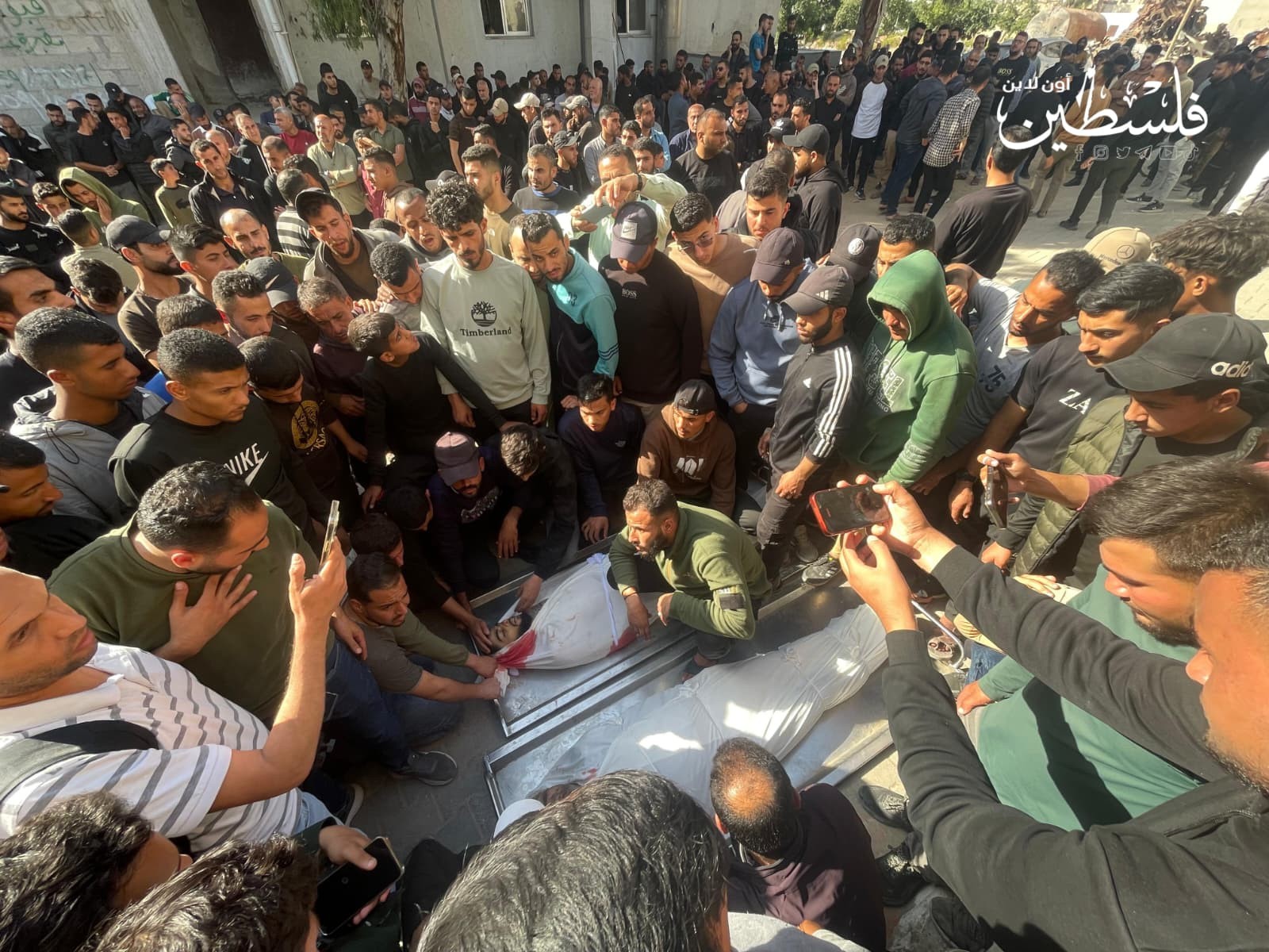 من وداع شهداء الاستهداف الإسرائيلي لمركبة مدنية قرب مفترق حيدر غربي مدينة غزة