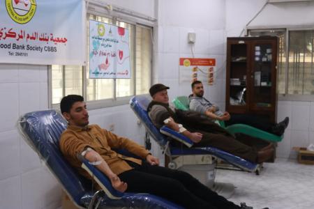 نظم قسم العلاقات -كلية الاعلام بجامعة الأقصى، بالتعاون مع جمعية بنك الدم، أمس، حملة للتبرع بالدم.