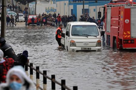 ومنذ الجمعة، يضرب قطاع غزة منخفض جوي عميق تسبب في حدوث سيول وغرق طرقات وشوارع .