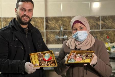 برأس مال محدود لم يتجاوز 100 شيقل، بدأ الزوجان الشابان إسراء وفريد مشتهى من قطاع غزة مشروعهما في تصنيع حلوى الشوكولاتة.