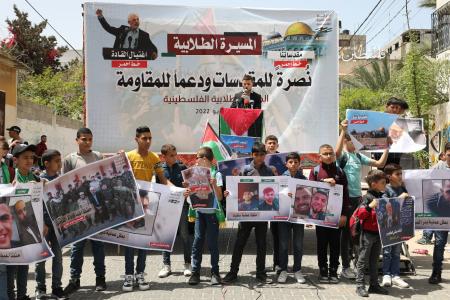 وعلّق المشاركون في الوقفة لافتة كبيرة أمام مكتب السنوار بغزة، كُتب عليها عبارات منها "مقدّساتنا خط أحمر"، و"اغتيال القادة خط أمر" ولافتات تحمل صورًا لقادة المقاومة ولمنفّذي العمليات في الداخل المحتل.