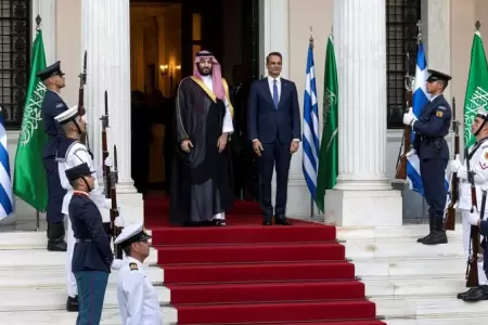 وكان رئيس الوزراء اليوناني، قد رحب بولي العهد السعودي، لحظة وصوله إلى مقر الحكومة بالعاصمة أثينا، وأجرى مراسم استقبال رسمية له، وقال إن الزيارة تعد فرصة لتعزيز العلاقات الثنائية، وسنبحث تطوير التعاون والشراكة مع الرياض.