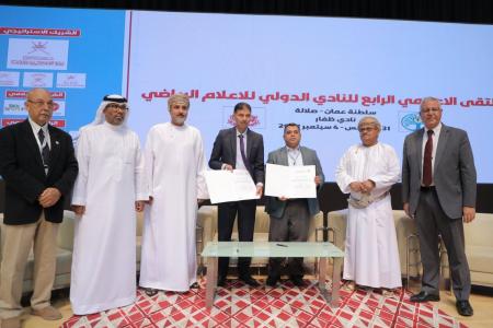 وقع عبد السلام هنية مساعد أمين عام المجلس الأعلى للشباب والرياضة، اتفاقية استضافة الملتقى الإعلامي الخامس للنادي الدولي للإعلام الرياضي، على هامش فعاليات اليوم الختامي للملتقى الإعلامي الرابع الذي استضافته سلطنة عمان.