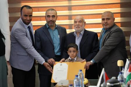 كرمت مؤسسة الشيخ أحمد ياسين الدولية، عصر اليوم الاثنين، الطفل الحسن طراد النجيلي أصغر حافظ للقرآن الكريم في فلسطين، من مدينة خان يونس جنوب قطاع غزة.