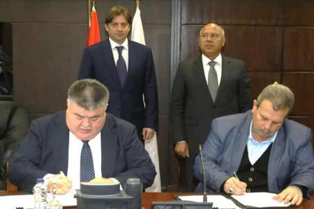 ووقع عن الجانب المصري الهيئة القومية لسكك حديد مصر، والروسي شركة ترانسماش هولدينغ إنترناشيونال إيه جي.