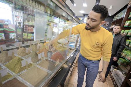 ومن أجل تحقيق أرباح معقولة، يبدأ موسى مروان (25 عامًا) الذي يدير محلًا في سوق الزاوية أيضًا، لبيع التوابل، التحضير مبكرًا لموسم رمضان.