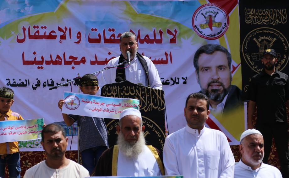 وطالب القيادي في الجهاد الإسلامي أحمد المدلل في كلمة له بعد انتهاء المسيرة إلى مهرجان خطابي، قيادة السلطة بإصدار أوامرها بشكل عاجل لوقف سياسية الاعتقال السياسي.