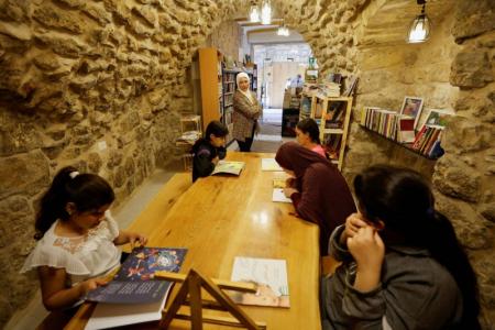 على مدخل البلدة القديمة في الخليل، ثمة متجر يتميز بأقواسه المبنية بحجر قديم يفوق عمره 100 عام، نفضت عنه عبير العسيلي غبار 15 عامًا من الهجر، وحولته إلى مكتبة ثقافية يمكنك أن تشتري كتابًا منها أو وتقضي وقتًا ممتعًا لقراءته داخلها أيضًا.