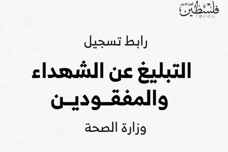 ودعت وزارة الصحة ذوي المفقودين والشهداء في قطاع غزة لتسجيل أسماء الشهداء والمفقودين من خلال الرابط التالي، اضغط هنا.
