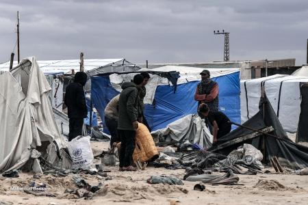 ومع دخول فصل الشتاء، ازدادت معاناة الأسرة، حيث أصبح البرد القارس تهديدًا حقيقيًا لصحتهم وسلامتهم. وكلما تساقطت الأمطار، ينشغل الحاج فتحي وأطفاله بوضع سواتر من الرمل حول خيمتهم لمنع مياه الأمطار من التسرب إلى داخلها.
